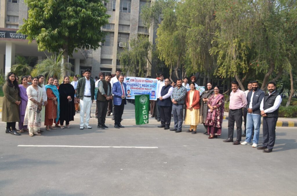 सिरसा, 23 नवंबर 2025: जेसीडी विद्यापीठ मे स्थापित जेसीडी मेमोरियल फार्मेसी कॉलेज में राष्ट्रीय फार्मेसी वीक जिसकी थीम “फार्मासिस्ट एस एडवोकेट्स ऑफ वैक्सीनेशन” के अवसर पर एक स्वास्थ्य जागरूकता रैली का आयोजन किया गया। इस रैली में कॉलेज के फार्मेसी विभाग के विद्यार्थियों ने बढ़-चढ़कर हिस्सा लिया।